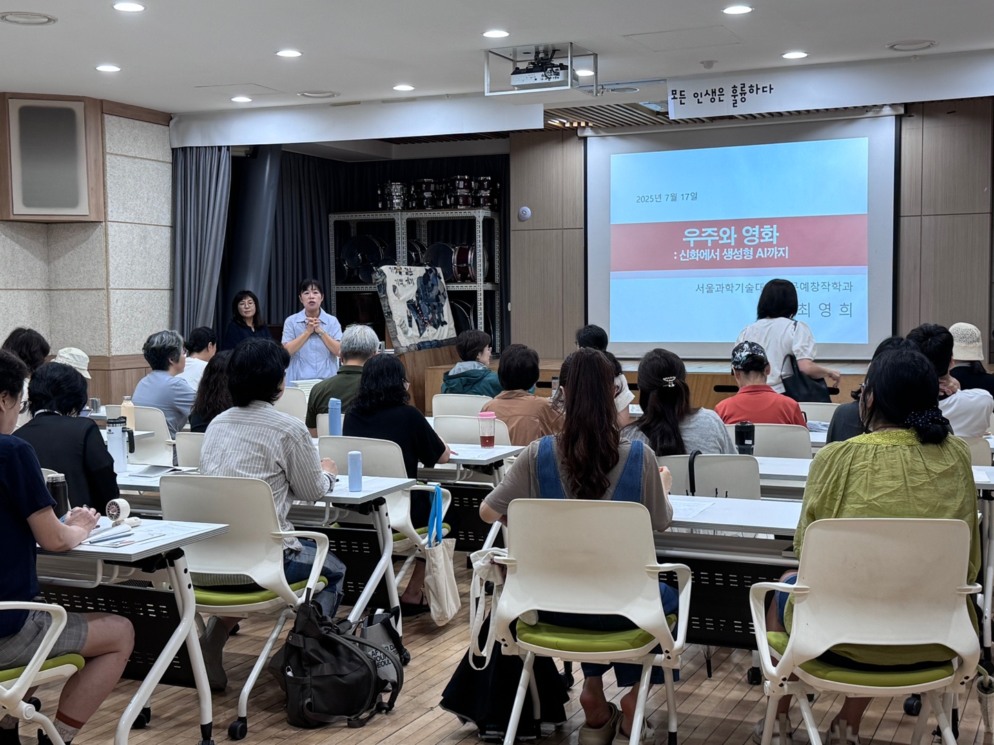 서울과기대 ‘미래 이후 연구소’와 노원구 화랑도서관이 함께 하는 공릉인문학 “우주와 인문학” 주최: 서울과학기술대학교 미래 이후 연구소 협력: 서울과기대 도서관 · 노원구립 화랑도서관 후원: 서울과학기술대학교 인문사회대학 일정: 2025년 6.26~7.24, 매주 목요일, 오전 10시~12시(총 5회) 장소: 공릉청소년문화정보센터 2층 폴짝실 6.26(목) 오전 10시 이명현(천문학 박사, 과학챙박 '갈다' 대표) “시와 우주” 7.03(목) 오전 10시 최진석(서울과기대 문예창작학과 교수) “우주와 불멸, 새로운 인간의 조건” 7.10(목) 오전 10시 안형준(과학기술정책연구원 우주공공팀장) “우주시대, 인간사의 문제들” 7.17(목) 오전 10시 최영희(서울과기대 문예창작학과 교수) “우주와 영화: 신화에서 생성형 AI까지” 7.24(목) 오전 10시 박상준(서울SF아카이브 대표) “사라진 우주소년을 찾아서-한국의 우주과학 문화사”